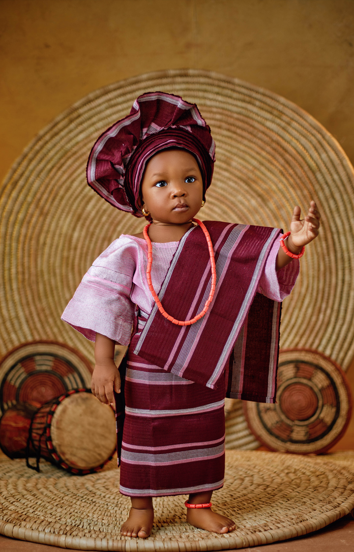 This traditional Aso Oke outfit is meticulously handcrafted using high-quality, durable Aso Oke fabric, known for its strength, texture, and luxurious feel. Aso Oke is a handwoven textile from the Yoruba people of Nigeria and is revered for its rich cultural significance.