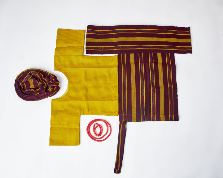 This traditional Aso Oke outfit is meticulously handcrafted using high-quality, durable Aso Oke fabric, known for its strength, texture, and luxurious feel. Aso Oke is a handwoven textile from the Yoruba people of Nigeria and is revered for its rich cultural significance.